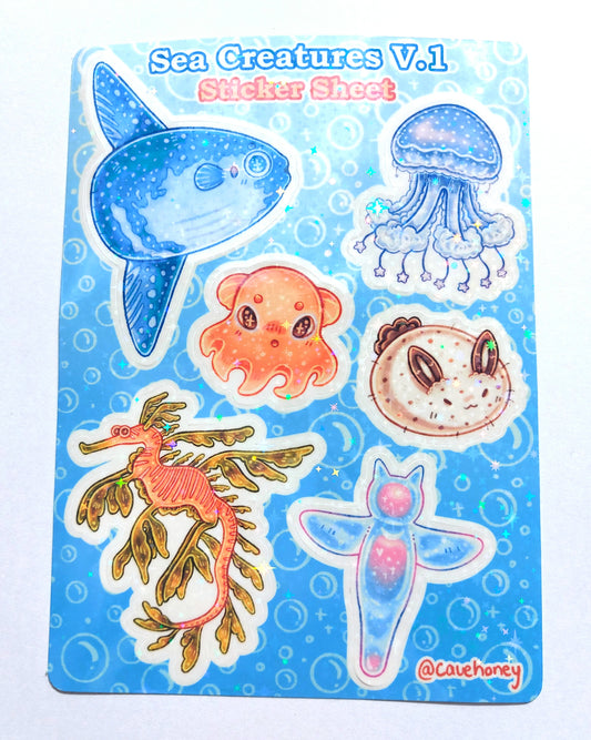 Sea Creatures V.1 Sparkly Vinyl Sticker Sheet