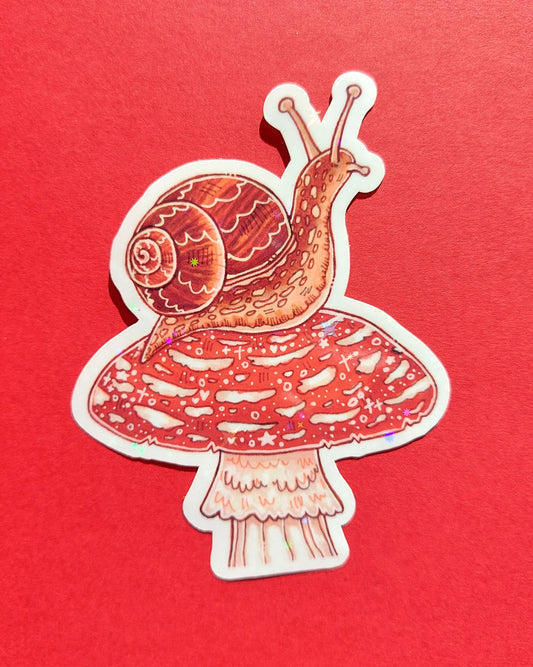 Mushroom Snail Sparkly Vinyl Sticker