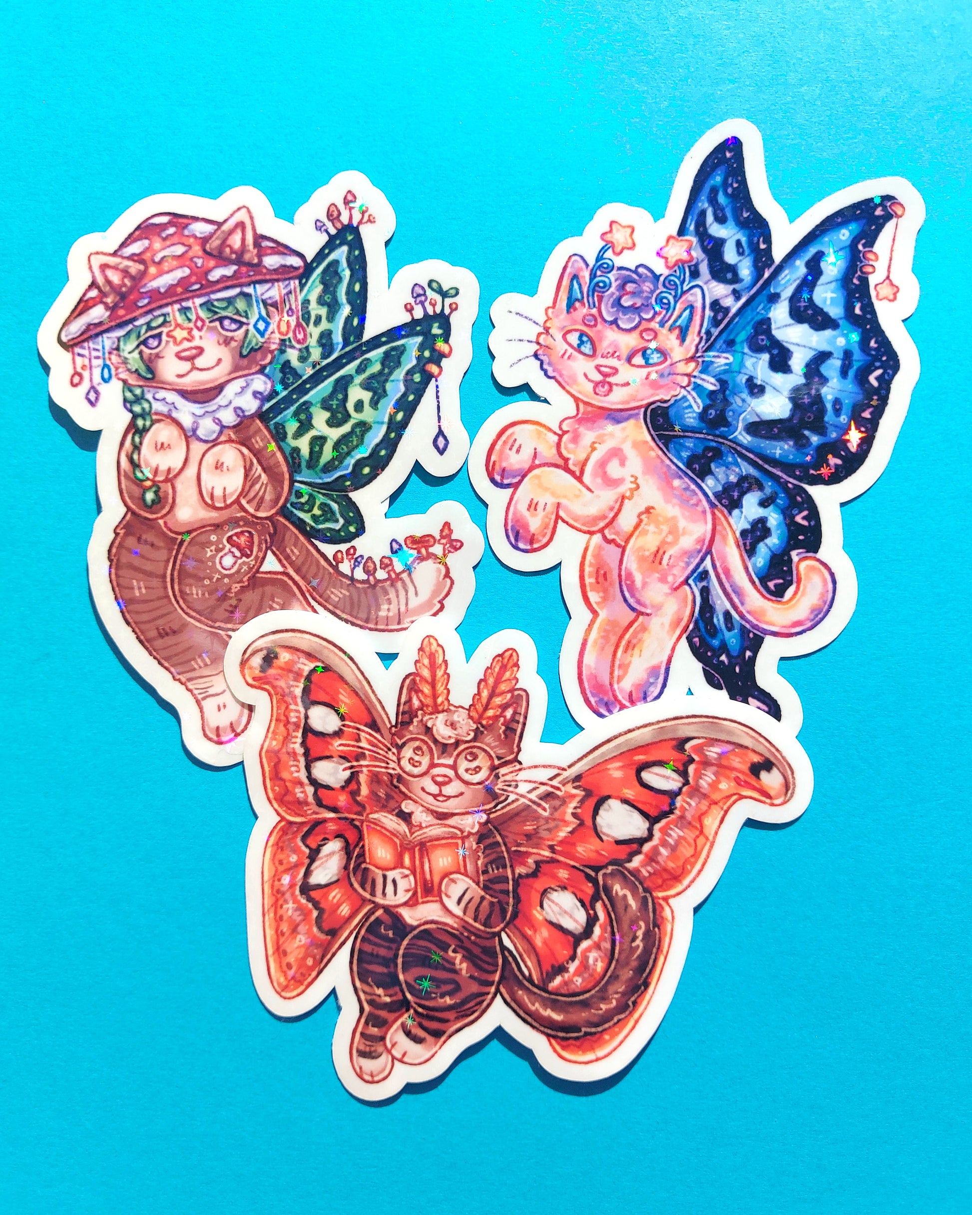✿ A collection of wonderfully sparkly vinyl faerie cat stickers!
